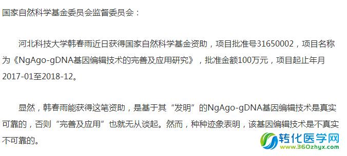 而后,方舟子也来“参合一脚”, 向国家自然科学基金委员会监督委员会实名举报韩春雨。