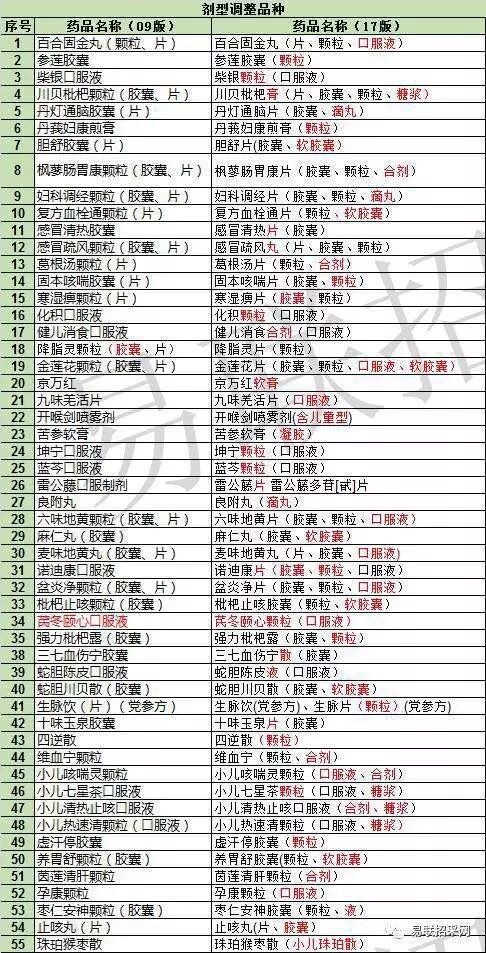 新版医保药品目录的调整有进有出,最后,我们一起来看看,本次目录调整的大咖,中成药新旧两版医保目录品种对比,来源于易联招采网整理。