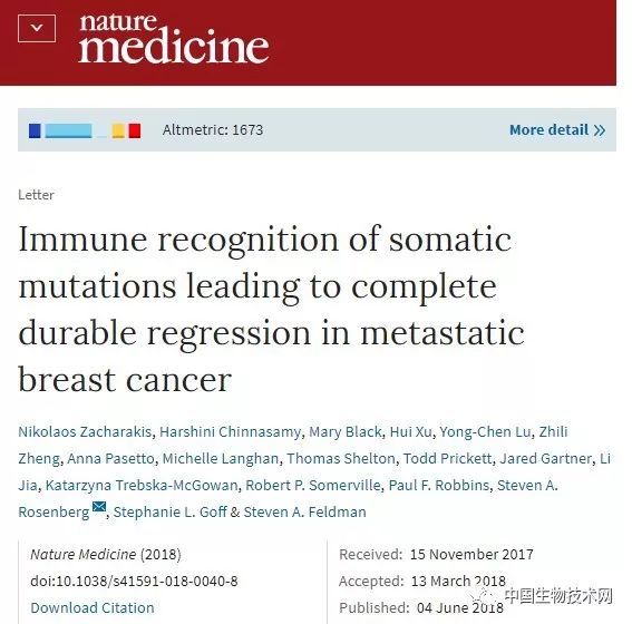 近日,科学家开发的一种新型免疫疗法,使一位乳腺癌晚期患者的癌细胞完全消退,并且效果已维持了近2年。而在此之前,该患者已尝试所有常规治疗方法,且都以失败告终。这项研究由美国国立卫生研究院(NIH)国家癌症研究所(NCI)Steven Rosenberg博士领导。研究结果已于6月4日发表在《Nature Medicine》上。