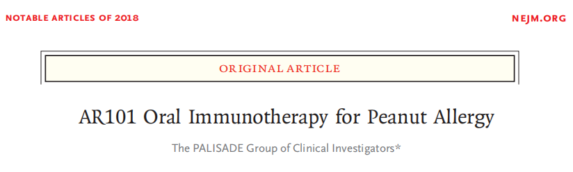 第七篇来自于Aimmune Therapeutics的研究团队,题为《AR101 Oral Immunotherapy for Peanut Allergy》。研究者们研究对了对于花生过敏的口服药物治疗方案。