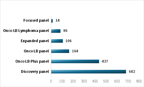截至目前,Avida 体系下总共可提供六款目录化的 DNA panel、一款 Methyl panel,以及定制化 panel,下图展示了目录 DNA panel 的基因数量。