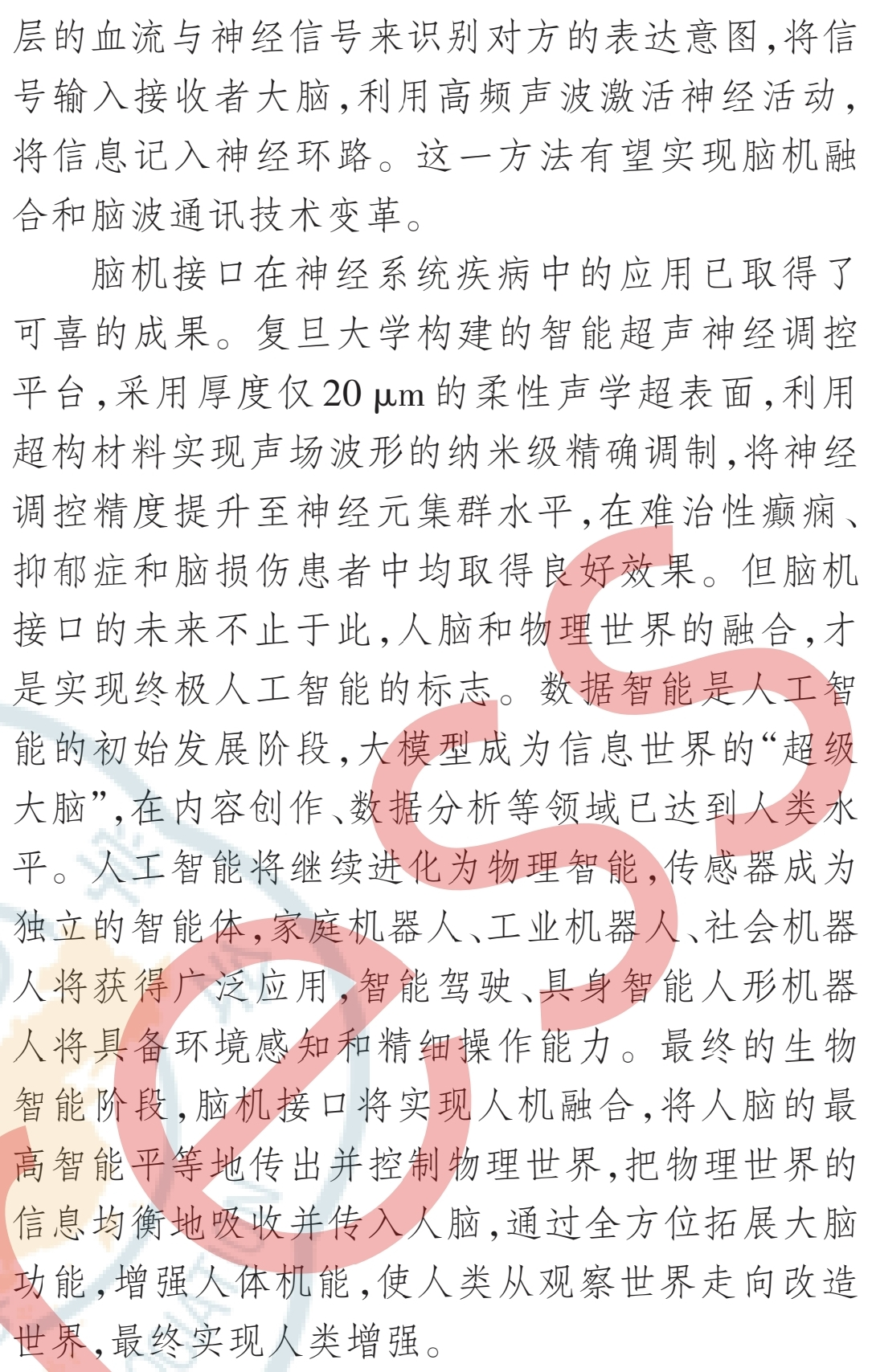 5. 脑机接口——先治病,再走向“人机融合、人类增强”,并点出“无创高频声波”这一潜在颠覆路线