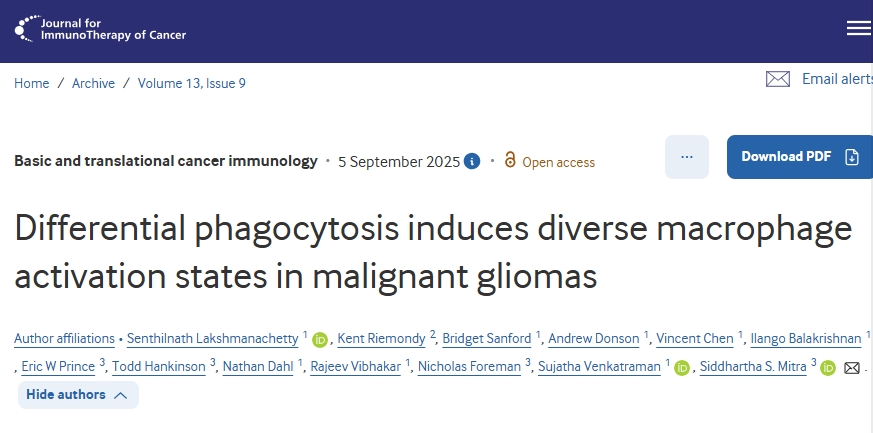 近日,美国科罗拉多大学研究学者在期刊《Journal for ImmunoTherapy of Cancer》上发表了研究论文,题为“Differential phagocytosis induces diverse macrophage activation states in malignant gliomas”,这项研究强调,巨噬细胞的命运与它们吞噬物质的分子特性密切相关。吞噬作用并非单一、统一的过程,而是一个动态且依赖于环境的事件,它驱动着巨噬细胞的特化和可塑性。通过证明 RT 和抗 CD47 疗法通过影响肿瘤免疫原性塑造了不同的巨噬细胞表型,该研究为理解如何利用和重新编程巨噬细胞活性以获得治疗益处提供了框架。这些发现凸显了针对巨噬细胞可塑性进行靶向治疗作为增强抗肿瘤免疫和改善恶性胶质瘤及其它疾病预后的策略的潜力。