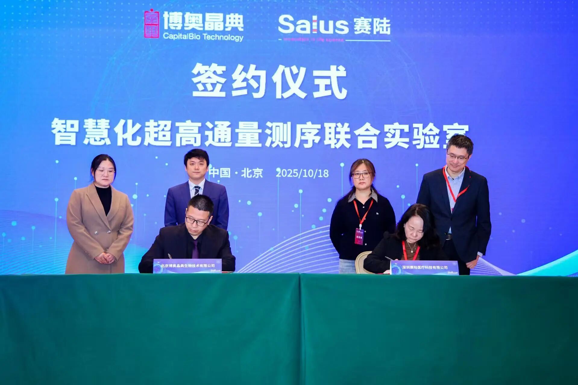 发布会上,行业领军企业博奥晶典与赛陆医疗就共建智慧化超高通量测序联合实验室正式签署战略合作协议。博奥晶典总裁孙义民博士带队与赛陆医疗首席商务官徐晓玲女士团队共同出席了本次签约仪式。双方将携手推动国产仪器设备与核心技术的自主可控,共同应答关乎国家生物安全与科研产业未来的“时代之问”。
