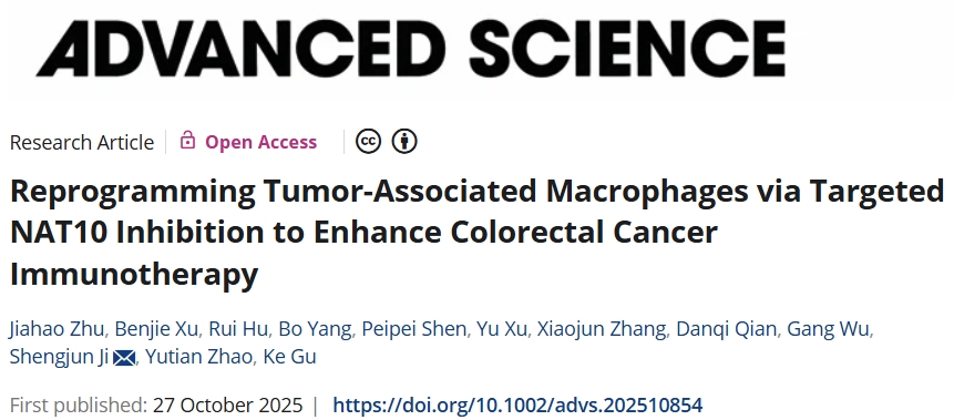 近日,南京医科大学附属苏州医院研究团队在期刊《Advanced Science》上发表了研究论文,题为“Reprogramming Tumor-Associated Macrophages via Targeted NAT10 Inhibition to Enhance Colorectal Cancer Immunotherapy”,本研究中,研究发现表明,通过调节 NAT10 相分离,Sono@NAT10 有可能成为一种治疗结直肠癌的新型免疫疗法策略,为该疗法的临床应用奠定了基础。