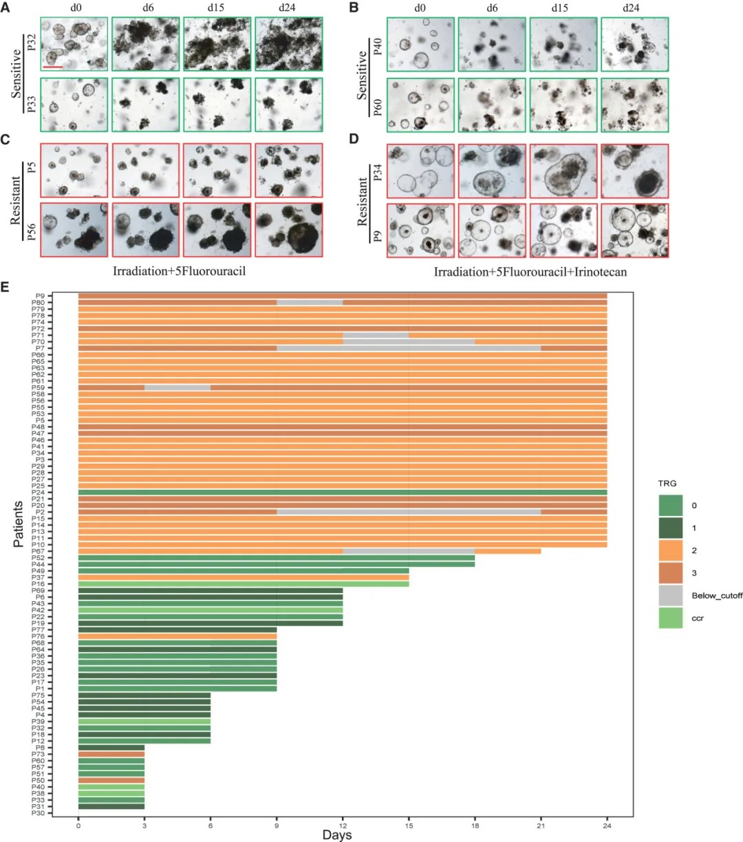 发现队列(80例)直肠癌类器官对联合放化疗的反应