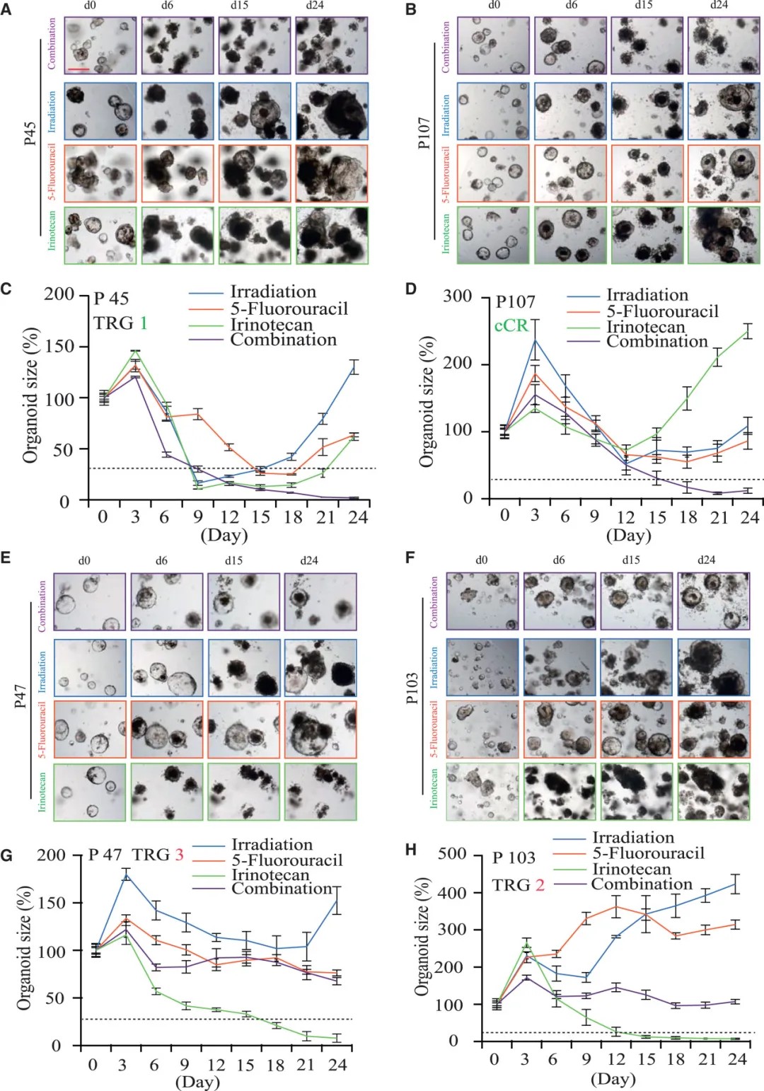 相比之下,类器官对单一药物方法(如5-Fu、伊立替康或放疗)的反应预测准确率仅为83.33%-92.50%。这表明,联合治疗的协同或拮抗效应使得类器官预测更加精准。