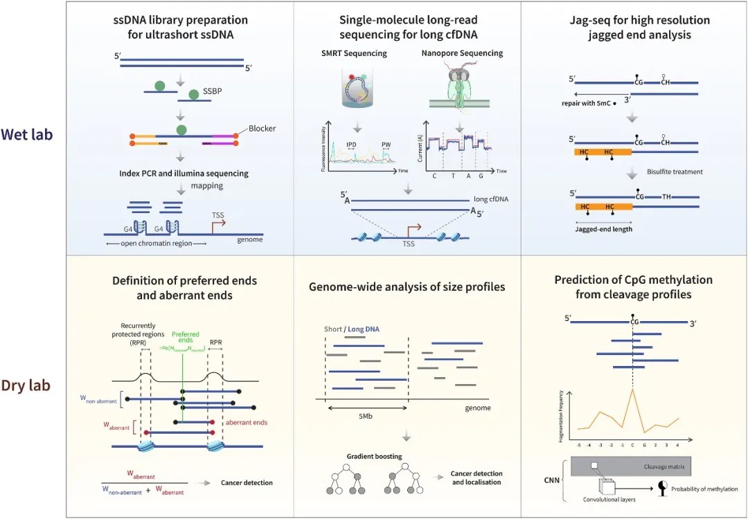 湿实验与干实验技术创新实例,这些技术助力癌症中片段组学特征的发现、表征与应用
