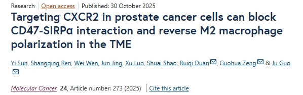 在前列腺癌细胞中靶向 CXCR2 可以阻断 CD47-SIRPα 相互作用,并逆转肿瘤微环境中 M2 巨噬细胞的极化