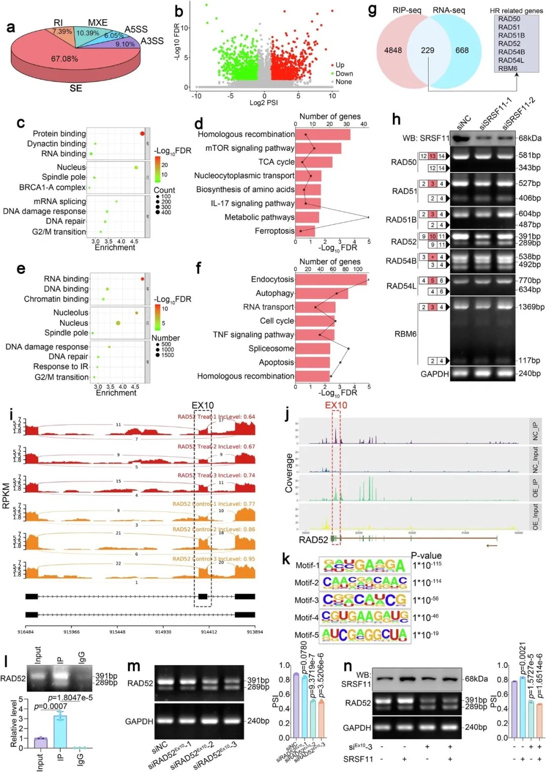 SRSF11通过调控剪接促进RAD52外显子10的保留