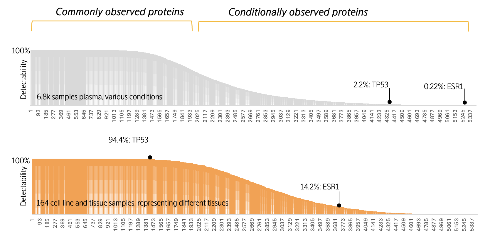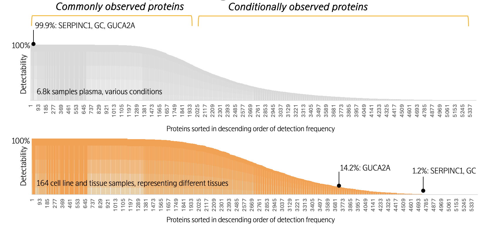 (横坐标为1-5400号蛋白质,纵坐标为超出检出限的样本比例)