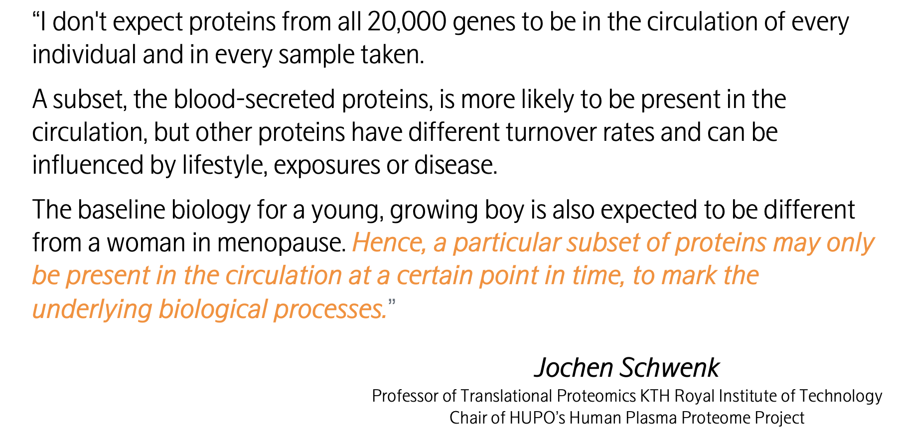 正如KTH皇家理工学院转化蛋白质组学教授、HUPO(人类血浆蛋白质组项目)主席Jochen Schwenk教授所言: