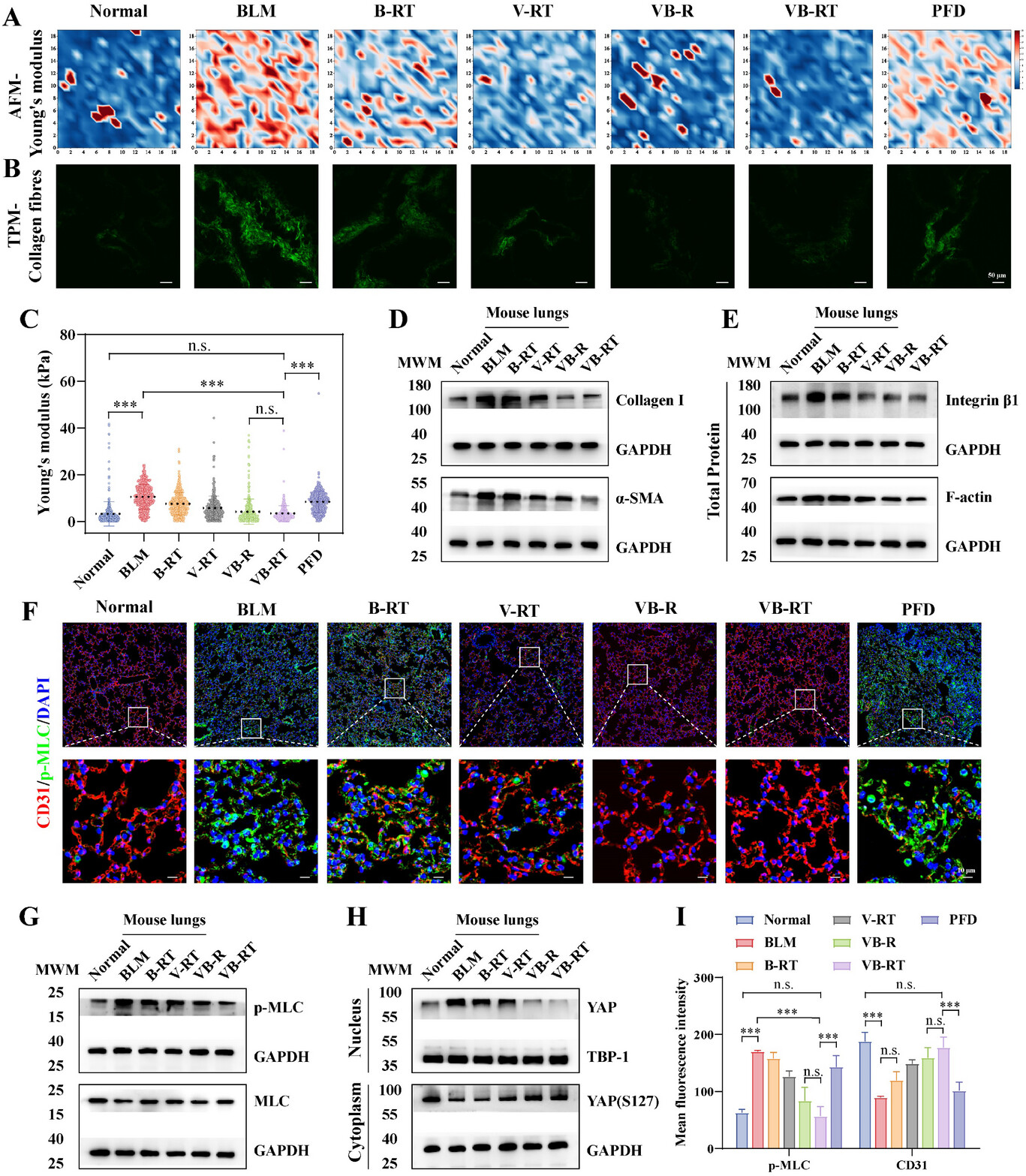 VB-RT 纳米颗粒可调节机械信号传导,并改善BLM诱导的纤维化小鼠的机械微环境