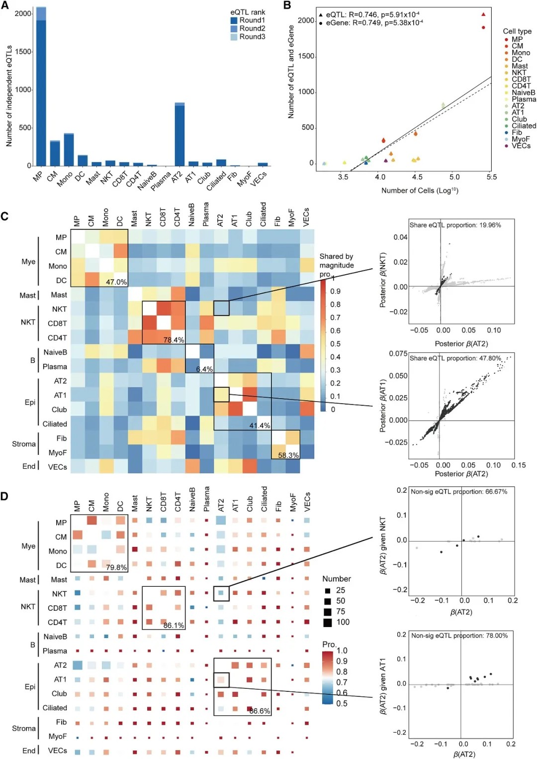 在中国肺单细胞eQTL队列中跨细胞类型定位eQTL