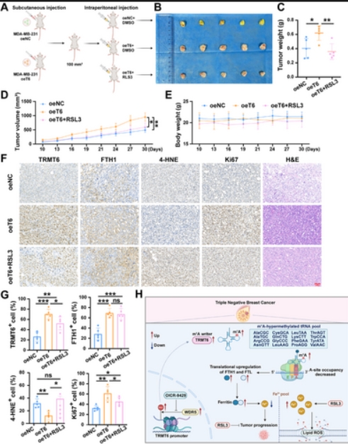 RSL3通过逆转铁死亡耐药性在体内抑制TRMT6介导的肿瘤生长