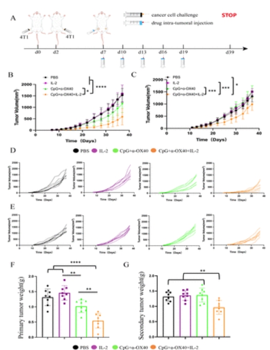 皮下注射 CpG/α-OX40/IL-2 可抑制原发肿瘤生长和转移