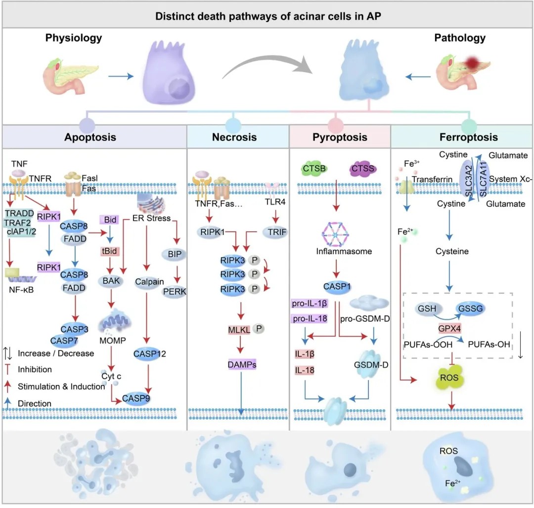 急性胰腺炎中腺泡细胞的不同死亡模式