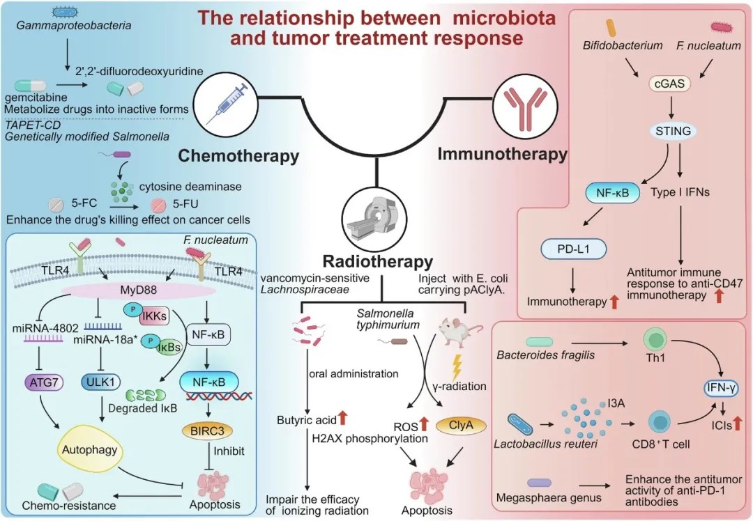 微生物群在癌症患者接受不同治疗模式下的复杂互作