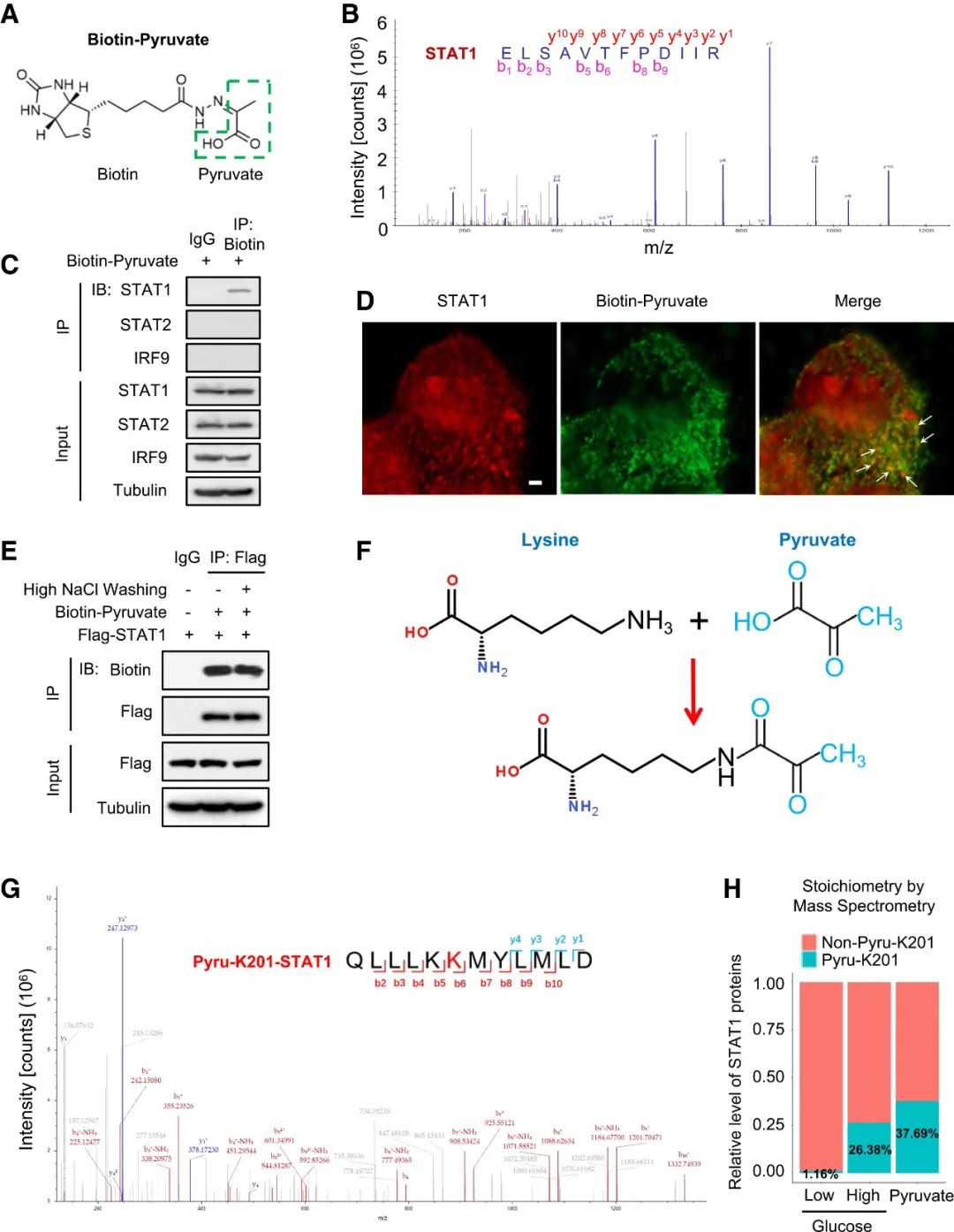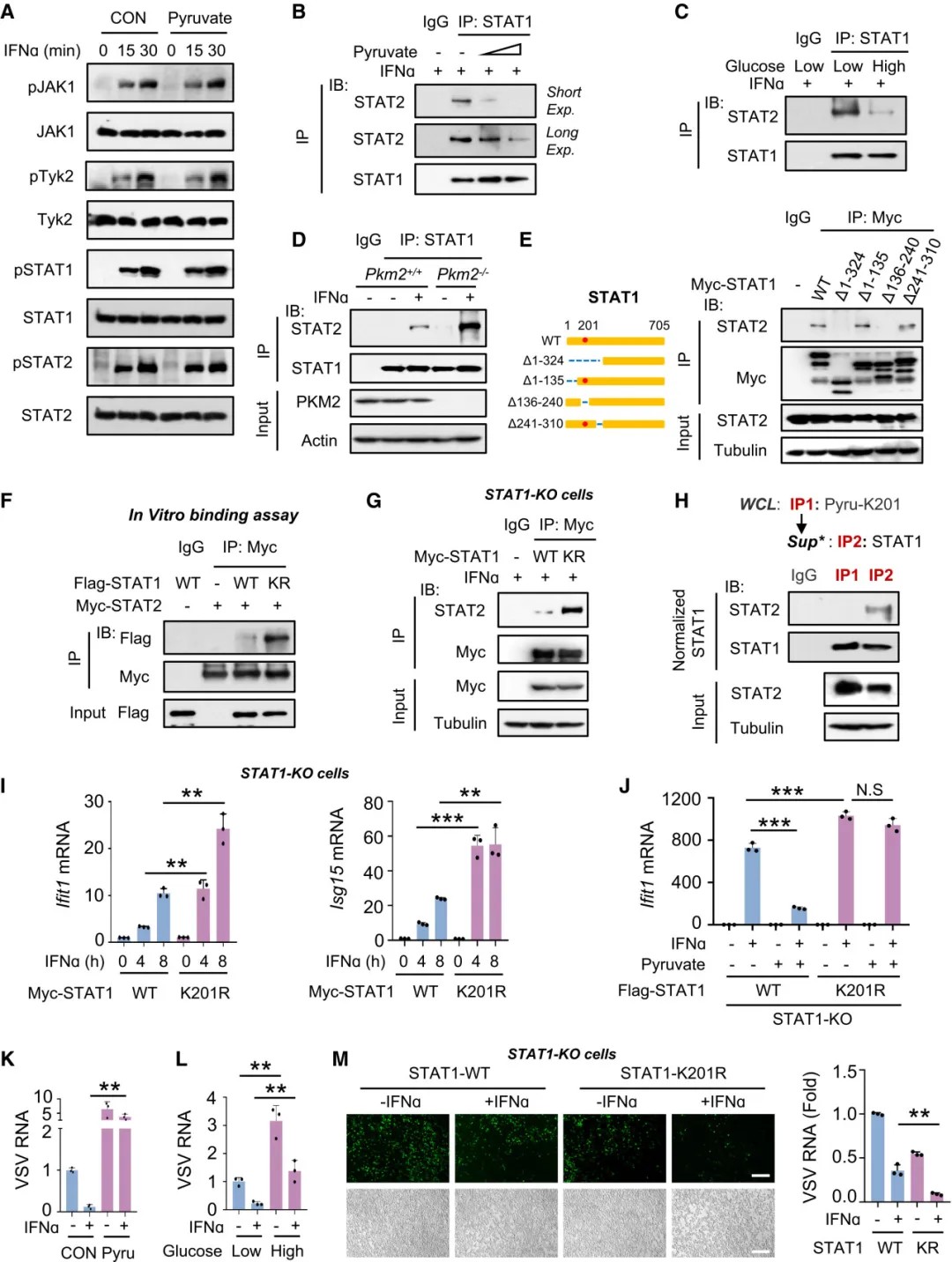 STAT1蛋白丙酮酰化受糖酵解中的PKM2与丙酮酸调控