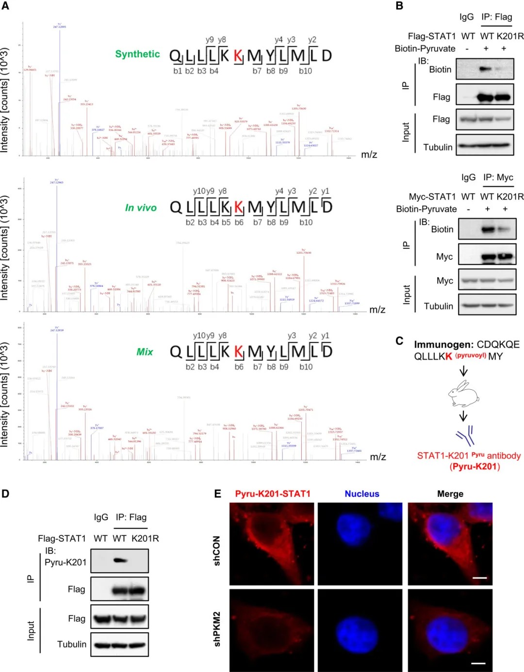 STAT1蛋白在Lys201位点存在丙酮酰化修饰