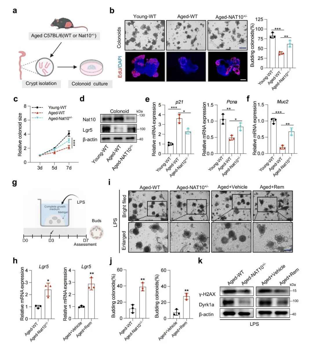 NAT10缺陷增强老年小鼠结肠类器官功能并减轻LPS诱导的增殖损失