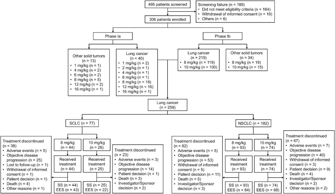 值得注意的是,在SCLC患者中,疗效在8.0 mg/kg和10.0 mg/kg两个剂量组间相似,且不受既往是否接受过免疫治疗或铂类化疗敏感性的显著影响。