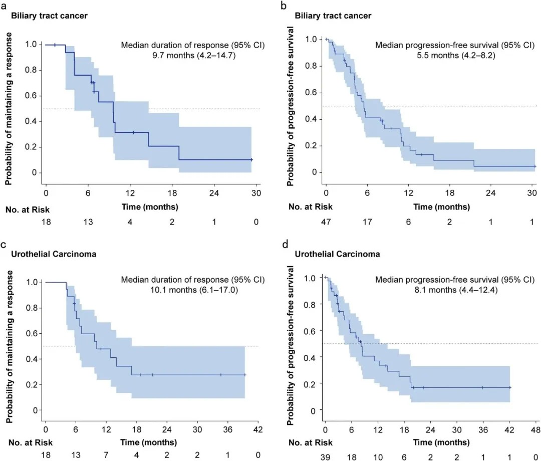 在非乳腺癌的实体瘤患者中,该药物同样显示出广泛的抗肿瘤活性。例如,在胆道癌、尿路上皮癌和妇科癌症患者中,中位无进展生存期分别为5.5个月、8.1个月和8.5个月。